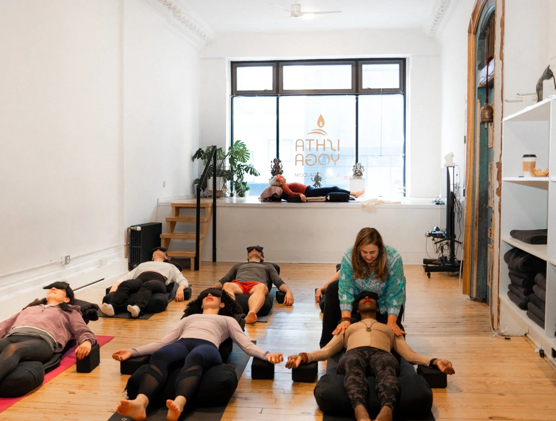 Class options that meet you at whatever level you are at in your journey. Offerings include asana, meditation, yin, restorative, and yoga nidra.